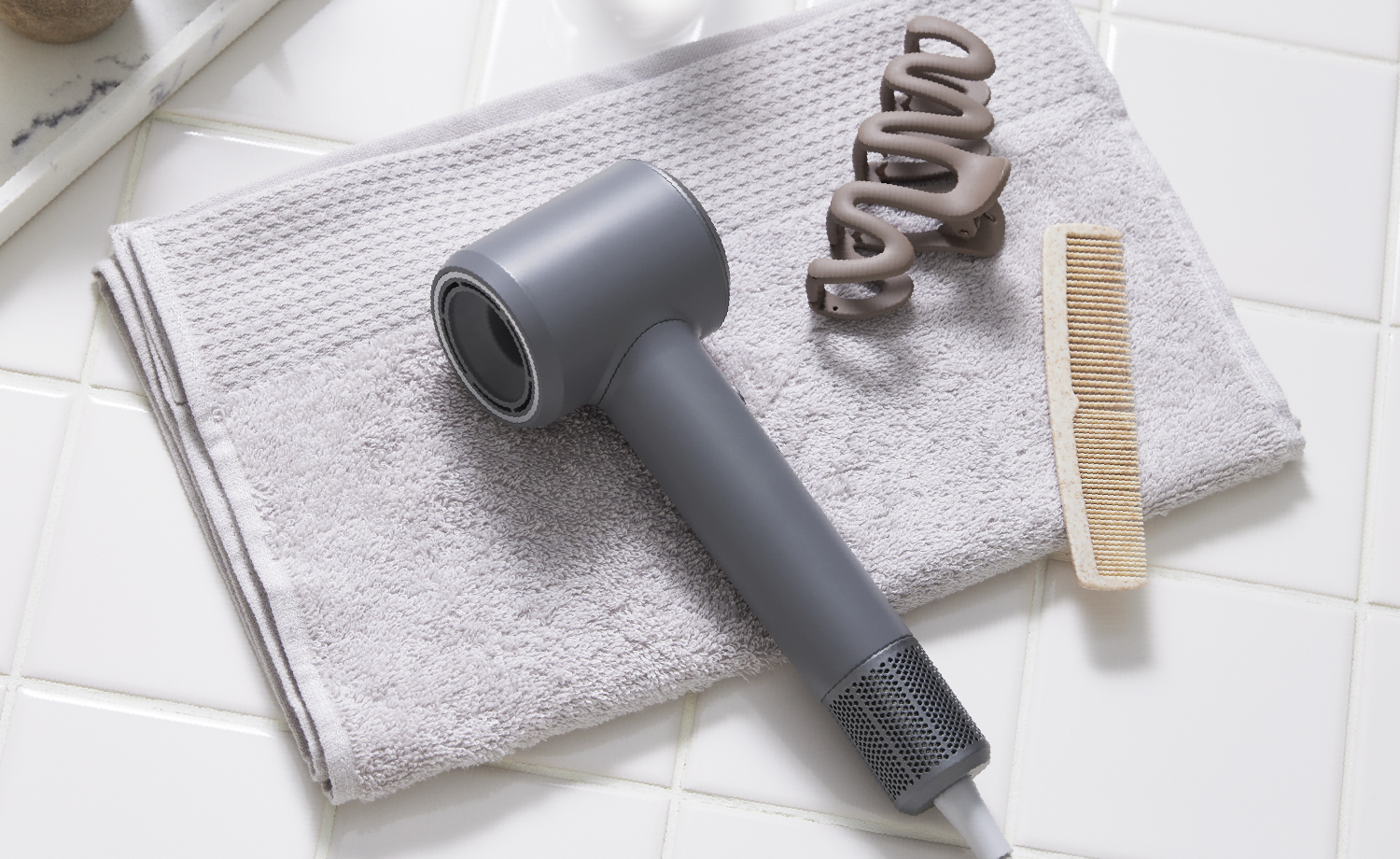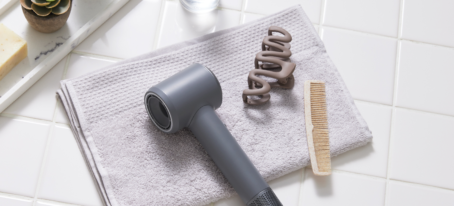 ブラシで髪をとかすだけで簡単、