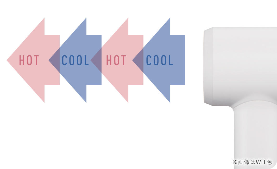 自動で温風と冷風を交互に切り替えることで、髪への熱ダメージを軽減します。